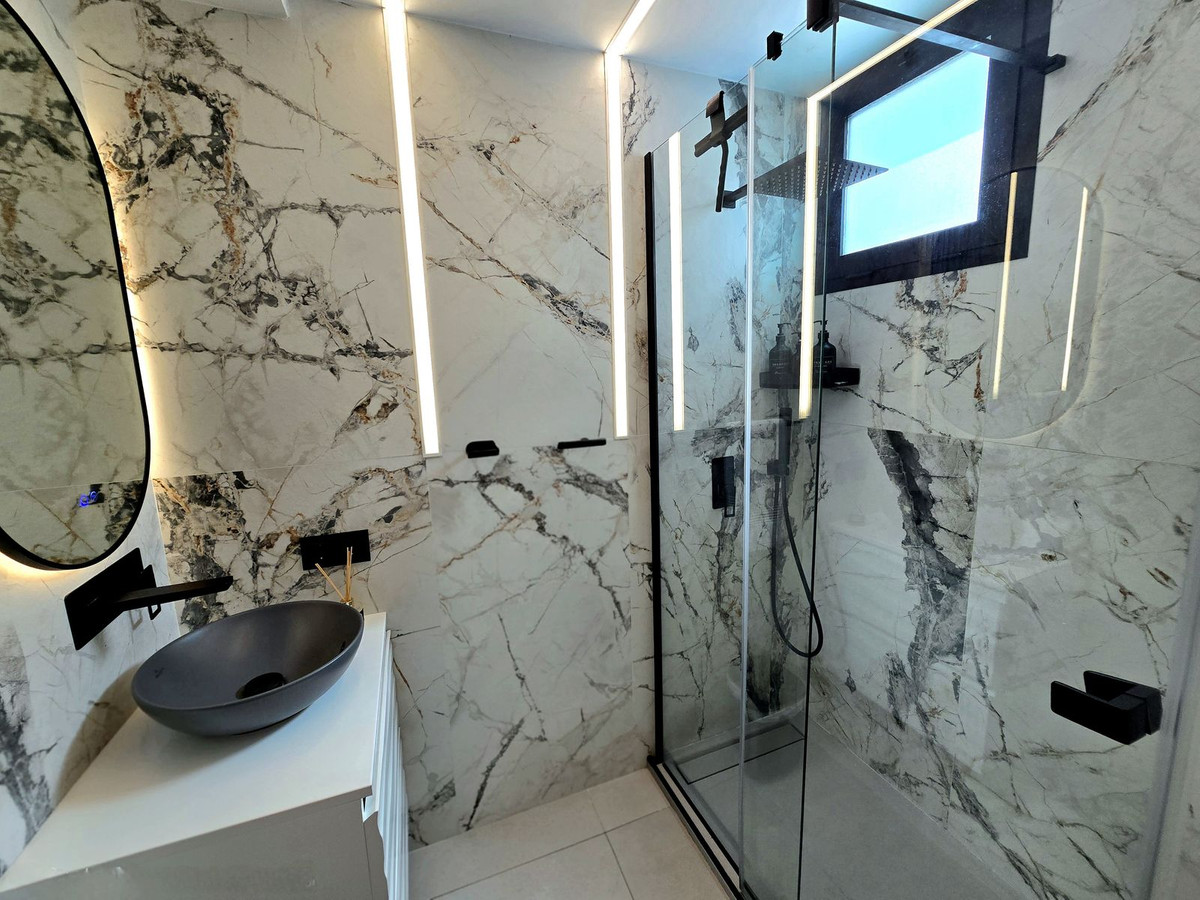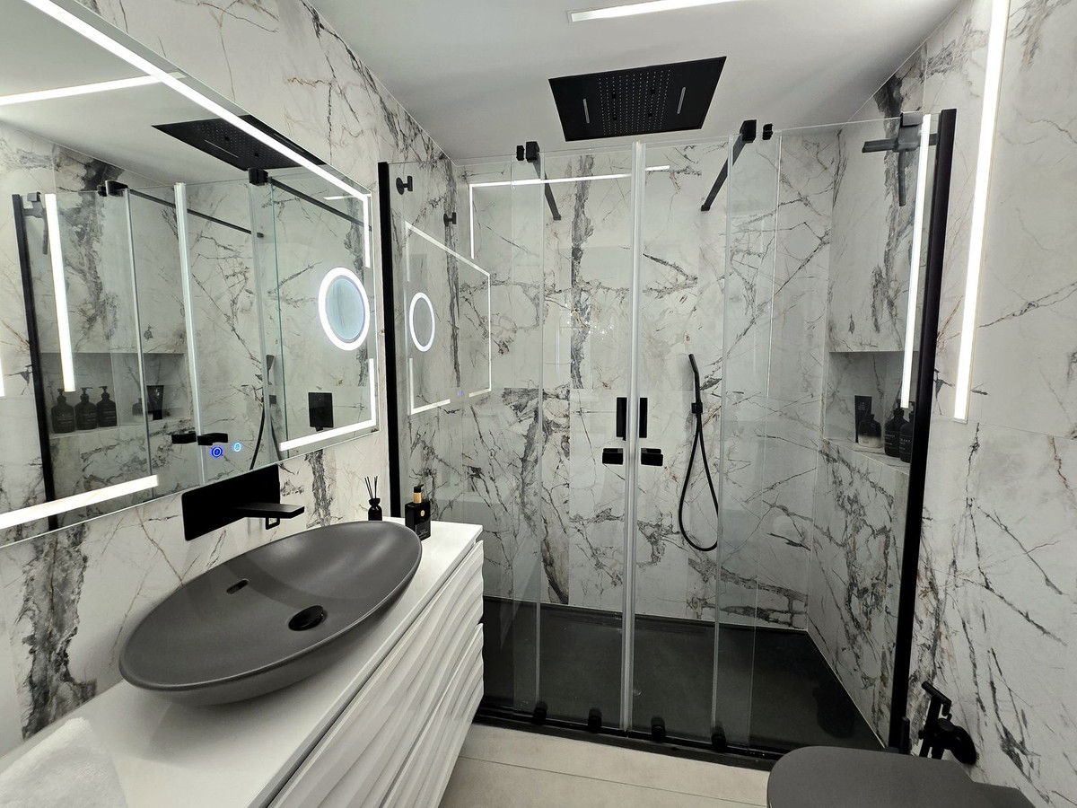 Luxury duplex penthouse with 3 terraces, private solarium and mountain views on the Costa del Sol Spectacular fully renovated duplex penthouse, located in an exclusive gated community with 3 swimming pools, gardens and 24h security. A unique property ideal both as a permanent residence and as an investment. It offers 155 m² built area, distributed into 2 spacious bedrooms and 3 modern bathrooms, all finished to high-quality standards. Bright living room with direct access to a terrace, providing an excellent indoor-outdoor connection. The property stands out for its 3 terraces, offering different outdoor living spaces: Large main terrace of 96 m², ideal for enjoying and entertaining. Terrace with direct access from the living room and the master bedroom, providing comfort and privacy. Impressive solarium on the upper floor, featuring a full bathroom and outdoor shower, perfect as an exclusive chill-out area. The kitchen features an invisible induction hob integrated into the countertop, combining design, technology, and functionality. It includes air conditioning, home automation system, double glazing, fitted wardrobes and a covered terrace, ensuring maximum comfort all year round. The property also includes a private parking space and storage room, as well as lift access and communal areas with 3 swimming pools and beautifully maintained gardens. Gated community with 24-hour security, alarm system and controlled access. Prime location close to the beach, golf courses, schools and all amenities, in one of the most sought-after areas of the Costa del Sol. Exclusive listing. Ready to move in.